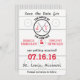 Diseño de Guarda la Fecha con fondo temático de hockey y monograma. Personaliza con los colores de tu equipo favorito.