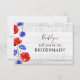 Personalice fácilmente esta tarjeta de propuesta para la fiesta de boda según la posición que desee: desde dama de honor hasta madrina, padrino hasta mejor hombre y más allá. Las amapolas rojas vibrantes y preciosas y las azules acianos ofrecen un toque enérgico de color sobre un fondo de madera rústica blanqueada. Este diseño con estilo moderno y de granja está lleno de encanto silvestre para la romántica boda campestre.
