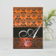 Invitación AMARILLO NARANJA NEGRO DAMASCO MONOGRAMA ,blanco b