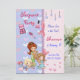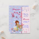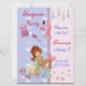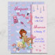 Patrón festivo de corazones bonitos en azul claro/lavanda. Hay toques dulces de niña con lazos rosados impresos y recorte de encaje. Tres niñas están vestidas con pijamas y listas para divertirse. Personaliza el texto en el frente y la parte posterior de esta adorable invitación de cumpleaños para una fiesta de pijamas. El nombre, el año de cumpleaños y toda la información están listos para ser cambiados por ti.