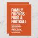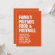 Con una tipografía en blanco audaz, esta invitación a la cena naranja de Acción de Gracias es fácilmente personalizada y marca el tono para una fiesta divertida e informal en el día del pavo. El texto dice "comida y fútbol para amigos de la familia" ¡pero se puede cambiar para leer lo que quieras! ¡Fantástico para los Amistades también! También disponible como descarga digital de invitación de Acción de Gracias