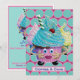 Arte ilustrado de fantasía Invitación a pastel y café o cumpleaños - divertidos y coloridos Cupcakes Invitación para amigos y familiares. Una criatura dulce - Arte bajo y caprichoso llamado "Cupcakes Psicodélicos". En colores turquesa, rosa, amarillo, verde, azul.
