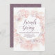 Esta invitación al personalizable incluye el texto "Friends Giving" (Amigos dando) en una elegante fuente de escritura, rodeada por una cortina de color de agua de colores otoñales.El fondo es un color berenjena/púrpura (que puede cambiarse a cualquier color de su elección) con un patrón blanco de quatrefoil. La información del fiesta puede cambiarse a su gusto por su reunión especial de otoño.