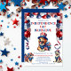Los mejores perros patrióticos debajo de un arco de globo patriótico en rojo, blanco y azul es la base de esta celebración "barbacoa", amistosa con los mascotas, del "4 de julio".