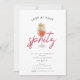 Esta divertida invitación de verano a la ducha de novias tiene un tema de amor en First Spritz con acentos cítricos. El ilustracion delantero es una cuenca acuática de Aperol con hibiscos y toques frutales. La parte posterior es un patrón de corte naranja de acuarela a juego con un color pantone del fondo viva magenta del año. Es divertido y caprichoso, perfecto para las duchas nupales de cócteles de verano.