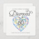Bonita invitación de boda de diamante en forma de corazón pintada a mano con acuarela. Personalice con los detalles de su aniversario de bodas de diamante número sesenta. Arte y diseño original de acuarela de Sarah Trett www.sarahtrett.com para www.mylittleeden.com en zazzle.