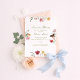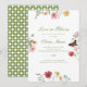 Esta invitación de boda para la ducha de novia Love in Bloom es un elemento destacado fresco y romántico para la novia moderna de jardín. Diseñada en un estilo botánico de Bellas Artes con flores silvestres pintadas, mariposas delicadas y un guión verde de jardín animado, captura la estética de Jardín Encantado y Fiesta de Té en el Jardín que las novias adoran. Perfecta para la novia amante de las flores que quiere romance suave de prado con un toque pulido. Estiliza con flores pastel, manteles de mesa salvia y cristalería vintage. Personaliza la tuya hoy.