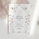 La hermosa invitación a una ducha de novia con temática de flor silvestre incluye un borde acuático de flores silvestres y mariposas. Personalice su información o haga clic en "Haga clic en el personalizar más adelante" para editar estilos de fuente, tamaño y colores.