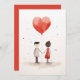Un ilustracion minimalista y reconfortante de una pareja que se toma de la mano, conectado por un globo rojo con forma de corazón que flota sobre ellos. El diseño sencillo, la textura acuarela y los toques suaves de color sobre un fondo blanco le dan un toque suave y onírico a la obra de arte, simbolizando el amor y la unión de una manera pura e inocente.