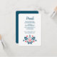 Inspirada en elementos frescos y audaces del diseño escandinavo, esta tarjeta de detalles de boda presenta hermosas ilustraciones florales en rojo y azul.
