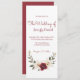 La invitación a la boda de "Amor eterno" ofrece una expresión de romance verdaderamente eterna. Este elegante diseño exhibe un hermoso ramo acuático en el fondo, cuidadosamente compuesto por rosas rojas profundas y lirios blancos prístinos, complementado con delicadas hojas de molino polvoriento. El arreglo asimétrico y formal simboliza una historia de amor única y duradera. Con su estética clásica y sofisticada, esta carta es una promesa sincera de un amor que durará toda una vida y una invitación a presenciar el hermoso comienzo de tu eternidad.