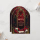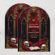 Amor eterno en las sombras de la oscuridad, en estilo gótico. El punto focal es una majestuosa arcada gótica decorada con delicados detalles dorados y brillando sobre un fondo rojo profundo. Las dos elegantes columnas que rodean la arcada le dan un toque sublime al diseño y resaltan el diseño opulento. El corazón colgando suavemente de la arcada dibuja el ojo y está enmarcado por un efecto sanguíneo goteo,