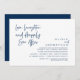 Marque el comienzo de su para siempre con elegancia utilizando nuestra tarjeta de invitación de celebración de fuga de boda contemporánea boho tema azul marino, "Amor, risa y Felices para siempre". Perfecta para parejas que extienden su alegre ocasión, esta invitación emana sofisticación con un toque de diversión, preparando el escenario para un evento memorable. Adornada con un tema de diseño de letra moderno y atemporal, añade un toque de encanto refinado a sus festividades. Creada por TeeshaDerrick, esta invitación promete capturar hermosamente su historia de amor.