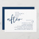 Anuncie y comparta su más feliz de siempre con estilo con nuestro moderno diseño estético de temática azul marino (Amor, risas y Feliz para siempre) tarjeta de invitación a la celebración del receprion boda. Es ideal para las parejas que han decidido celebrar su mejor día. Con un diseño sofisticado pero lúdico, esta invitación seguramente marcará el tono para un evento inolvidable. La tarjeta de invitación incluye un diseño de escritura moderno y minimalista, añadiendo un toque de elegancia eterna a tu celebración. Diseñado por TeeshaDerrick