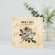 Un diseño clásico de tarjeta de boda, aniversario o Día de San Valentín con estilo vintage que presenta una pareja de hombre y mujer anticuados con ropa elegante y un fondo con estilo de papel de escritura floral antiguo. Agregue sus nombres personalizados o su propio texto personalizado o deje la segunda línea de texto opcional en blanco. Perfecto para bodas, aniversarios, Día de San Valentín y más.