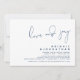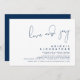 Esta es la tarjeta de invitación para la fiesta de elopement de boda, con diseño de letra Azul Marino minimalista / minimalismo (Amor y Alegría).