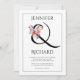 Elegant ampersand, erhododendron branch with wpeach-pink flowers black and white floral wedding invitation. This modern design includes an elegant black ampersand adorned with a rhododedron branch and peach-pink flowers, the names of the couple names and text. There is a black thin border around it. Simple yet beautiful this wedding invite will set the tone for your wedding
