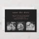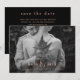 Esta elegante y moderna tarjeta para salvar la fecha presenta tu foto personal en la parte frontal, con un falso ampersand de rosa oro que conecta sus nombres. En el reverso hay espacio para 3 fotos más, además de información adicional para salvar la fecha.