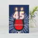 Agregue un nombre al personalizar para esta invitación de grupo única. Una divertida invitación a la fiesta de cumpleaños número 45 con alegres números de velas quemándose en un vaso de vino tinto. Ver toda la gama de invitaciones y tarjetas en mi tienda.