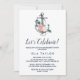 Esta tarjeta de invitación del ancla floral de verano vamos a celebrar es perfecta para un evento con tema náutico. El diseño presenta un hermoso ramo de flores de verano rosadas y blancas envueltas alrededor de un ancla de barco de acuarela. Esta invitación es perfecta para una fiesta de compromiso, despedida de soltera o cualquier evento o fiesta.