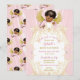 Invitación Ángel bebé rosa dorado niña afroamericana