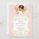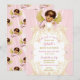 Invitación Ángel bebé rosa dorado niña étnica