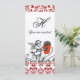 Pintura vintage de ángel negro y blanco con flores rojas. Remolinos elegantes, damasco rojo con una brillante piedra preciosa de rubí 3D. Este diseño artístico y genial es fácilmente personalizable con tu texto y iniciales como ceremonia de boda, tarjeta de anuncio de nupcias, tarjetas de lugar, save-the-date, agradecimiento, baby showers, bridal showers, dulces 16, fiestas de cumpleaños de quinceañera, showers de compromiso romántico, Navidad, vacaciones, oficina, reuniones familiares, celebraciones, aniversarios, reuniones, o casi cualquier evento que desees! Diseño digital por BALDESIGN3D (c).
