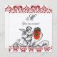 Invitación ÁNGEL PINTANDO UNA FLOR ROJA DAMASCO MONOGRAMA Pla