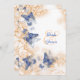 Una elegante mariposa, invitación temática de boda con plantillas personalizables, que presenta mariposas infundidas en cobalto, azul marino y azul real rodeadas de burbujas blancas marfil y remolinos florales dorados que enmarcan plantillas de texto. PERSONALÍZALO: Personaliza el texto y no dudes en agregar o eliminar plantillas que no sean necesarias utilizando el botón "personalizar". ESTILOS DE FUENTE / COLORES Y TAMAÑO: Estos pueden ser cambiados a cualquiera de tu elección, y las plantillas se pueden mover a cualquier posición en la invitación. Cualquier plantilla que no sea necesaria puede ser eliminada y se pueden agregar plantillas de texto y foto adicionales. IDEAL PARA: fiestas temáticas de "azul y blanco" y "mariposas", eventos de compromiso y aniversario "azul y dorado", fiestas de cumpleaños "tema tropical" para damas, niñas y mujeres que celebran una ocasión especial, y reuniones o banquetes de "tema de playa" o cualquier evento corporativo femenino para mujeres y damas. PEDIDOS PERSONALIZADOS - Para obtener ayuda con cambios de color o pedidos personalizados, no dudes en enviar