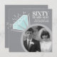Invite a sus amigos y familiares a una fiesta especial de aniversario de bodas de diamantes de 60 años o celebración de cena con estas invitaciones de dos fotos con anillo de diamantes de eternidad gráfico con destellos grises, azul claro y blanco. Personalizadas con sus propias fotos del día de la boda de la pareja y una foto actual en el reverso, luego agregue sus propias palabras de celebración, fecha y lugar de la fiesta. Otros artículos coincidentes disponibles. Arte gráfico y diseño del anillo original por www.mylittleeden.com en zazzle.