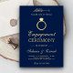 Sorprenda a sus huéspedes con esta elegante invitación al compromiso que incluye un hermoso anillo de diamantes de oro. Simplemente agregue los detalles de su evento en esta plantilla fácil de usar para convertirla en una invitación única. Voltea la tarjeta para revelar una hermosa textura falsa de purpurina de oro en la parte posterior de la tarjeta. Esta invitación es totalmente personalizable. Todos los textos son editables y el color de fondo puede cambiarse fácilmente a lo que más le convenga.