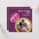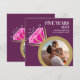 Invite a sus amigos y familiares a una fiesta especial de quinto aniversario de bodas o celebración de cena con estos tonos dorado, rosa, rosa vino tinto y blanco. Gráficos de anillo de eternidad de oro y tourmalina rosa y dos fotos de entonces y ahora en el centro de las invitaciones de aniversario número 5 de los anillos. Personalizado con sus propias fotos del día de la boda de su pareja y una foto actual en el reverso, luego agregue sus propias palabras de celebración, fecha de la fiesta y lugar. Otros artículos coincidentes están disponibles. Arte y diseño gráfico original del anillo por www.mylittleeden.com en Zazzle.