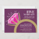 Invite a sus amigos y familiares a una fiesta de aniversario de bodas número 5 o a una cena de celebración con estas invitaciones de anillo de eternidad de tourmalina rosa gráfico en rosa oscuro, rosa, dorado y blanco. Personalizadas con las palabras de su celebración, fecha y lugar. Están disponibles otros artículos coincidentes. Arte y diseño gráfico original por www.mylittleeden.com en Zazzle.