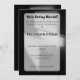 Presentando una invitación de boda moderna y dramática. Este diseño único presenta una llamativa fotografía en blanco y negro de alto contraste de anillos de boda enmarcados en una luz solar intensa y sombra. La estética minimalista y la geometría audaz la hacen perfecta para eventos modernos, loft, galería o eventos formales de corbata negra. Ideal para una pareja sofisticada que busca un anuncio de compromiso visualmente impactante o una invitación de boda elegante con un toque cinematográfico.