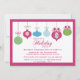 Esta fiesta de moda de moda, abierta las 24 horas, es una forma divertida y elegante de invitar a sus amigos y familiares a cenar fiesta durante las vacaciones. Puede personalizar fácilmente los detalles de su fiesta en el medio. En la parte superior, hay 6 adornos multicolores colgados. Alrededor de la invitación hay una zona caliente de color rosa fucsia. Copyright © Lilly Bimble http://www.mygrafico.com/lilly-bimble/aff_117.html