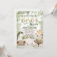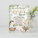 Invitación de cumpleaños de bebé covid con animales con máscaras con adorables animales bebé que llevan máscaras en un bonito fondo de vegetación. Esta linda invitación de cumpleaños de bebé de animales de género neutral se personaliza fácilmente para su evento simplemente agregando los detalles de su evento.