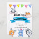 Llamando a todos los animales de la fiesta. Invitación para baby shower de animales bebés en la granja Zoo personalizada - Reffic. ¿Qué mejor manera de celebrar el próximo nacimiento de tu chico o chica genial, que con este diseño de tarjeta temática de animales bebés genial? Ducha de tema zoológico, granja de mascotas para él o ella. Cintas rosas y azules en el panel de personalización para bebé niño o niña. Tarjetas de invitación descargables o imprimibles al instante. Animales, unicornio, zorro, osito tema Animal Palooza. Esta adorable y divertida invitación de fiesta de baby shower con parche de zoológico de mascotas es la manera perfecta de iniciar la celebración del baby shower.