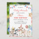 Esta Invitación es un diseño encantador y alegre perfecto para un pequeño día de fiesta. Presenta una animada escena acuática en el jardín de invierno con adorables animales de granja como una vaca, un cerdo, una oveja y un pato, todos celebrando con gorras y globos fiestas. Es perfecto para los padres que buscan lanzar una divertida celebración de temática animal que se siente a la vez cálida y caprichosa. Elementos coincidentes disponibles.