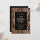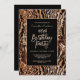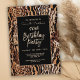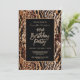Celebra su cumpleaños 40 con estilo de moda con esta invitación al estilo Safari personalizado. Presenta un patrón de impresión animal salvaje en tonos tierra de marrón, marrón, beige y negro con un patrón de rayas y manchas. Un fondo negro de moda enmarca el texto personalizado con estilo. Personalice la plantilla de texto con los detalles de su fiesta. También puedes cambiar la edad de 40 años a cualquier otra edad, es decir, 21, 30, 50, 60, etc.