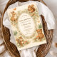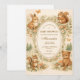 Este encantador diseño de baby shower de bosque presenta adorables animales del bosque reunidos alrededor de un delicado marco vintage, creando una cálida escena de cuento de hadas perfecta para celebrar la llegada de un pequeño. Dulces ilustraciones de un conejo, mapache, ardilla y búho están rodeadas de pequeños hongos, piñas, flores silvestres y suave follaje del bosque. La paleta neutral cálida y el estilo de acuarela suave dan al diseño un ambiente acogedor y nostálgico de guardería inspirado en las ilustraciones clásicas de los libros infantiles. Perfecto para baby showers con tema de naturaleza, celebraciones del bosque o reuniones rústicas en el bosque.