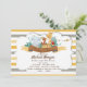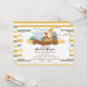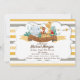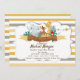 Cuidada ducha de bebe en la selva de la selva de la selva con una adorable jirafa, zorro y elefante con hojas de la jungla sobre fondo rayado.