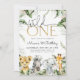 Invitación de 1 cumpleaños Wild One con bonitos animales de safari y vibrantes hojas tropicales - León, Elefante, Cebra, Giraffe.