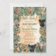 Diseño de Baby Shower de animales salvajes de la selva safari neutral en cuanto al género "¡Hola Bebé!" con follaje de vegetación tropical. El diseño trasero presenta un patrón blanco de forma irregular sobre verde musgo. Diseño compuesto por Holiday Hearts Designs.