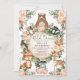 Trae calor y alegría al primer cumpleaños de tu pequeña con nuestra bella invitación, diseñada para un tema elegante, pero encantadoramente rústico, en el bosque. Nuestro diseño presenta todos sus animales de bosque favoritos en una magnífica paleta de colores otoñales, flores de acuarela morada, calabazas dulces y hojas de vegetación rústica que simbolizan el crecimiento y la vida.