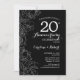 Invitación de fiesta de aniversario de bodas de 20 años Floral Blanco Negro. Diseño moderno minimalista con acentos de dibujos de contorno botánico y fuente de escritura tipografía. Tarjeta de invitación elegante perfecta para una celebración con estilo. Se puede personalizar para cualquier año de matrimonio. Impresiones de invitaciones de Zazzle o plantilla digital descargable instantánea.