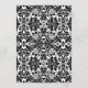 Diseño elegante rústico con patrón de damasco negro y blanco, fuente de escritura, falso brillo dorado y rosas blancas.