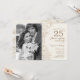 Invitación Aniversario 25 con foto - Floral marfil dorado