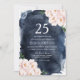Invitación de Aniversario 25 Navy Watercolor Blush Floral