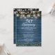 Con bonitas luces de hadas y delicada confeti de corazones de amor dorados sobre un fondo de paneles de madera rústica azul. Personalice con la información de su cincuenta aniversario de bodas dorado en letra elegante. Diseñado por Thisisnotme©