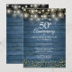 Invitación Aniversario 50 Azul Madera Rústica Corazones de Or